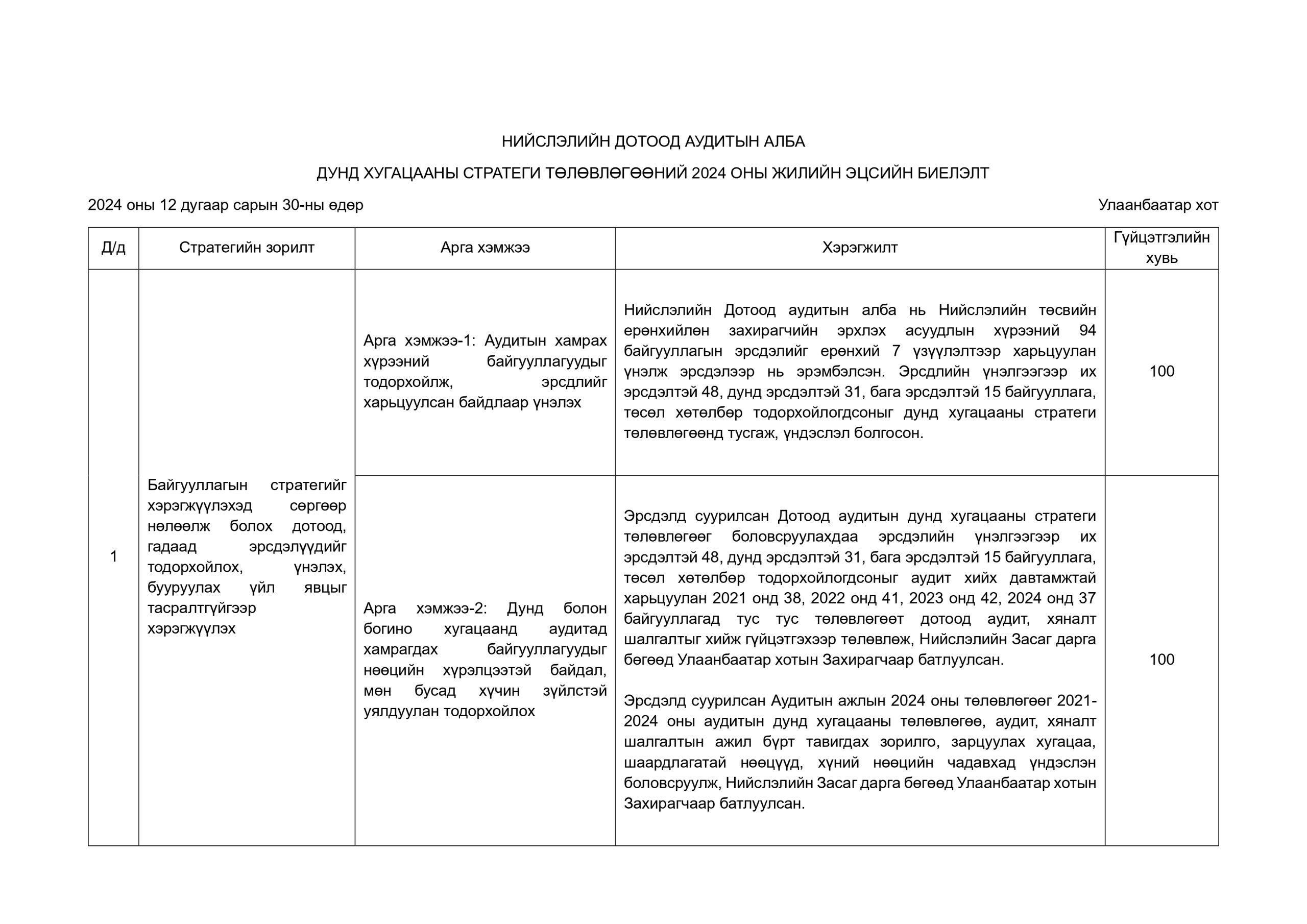 #Мэдээ, Мэдээлэл Нийслэлийн Дотоод аудитын албаны 2024 оны Стратеги төлөвлөгөөний хэрэгжилт admin / 9 months 2025-02-01 0 0 min read Нийслэлийн Дотоод аудитын албаны 2024 оны Стратеги төлөвлөгөөний хэрэгжилт Share: