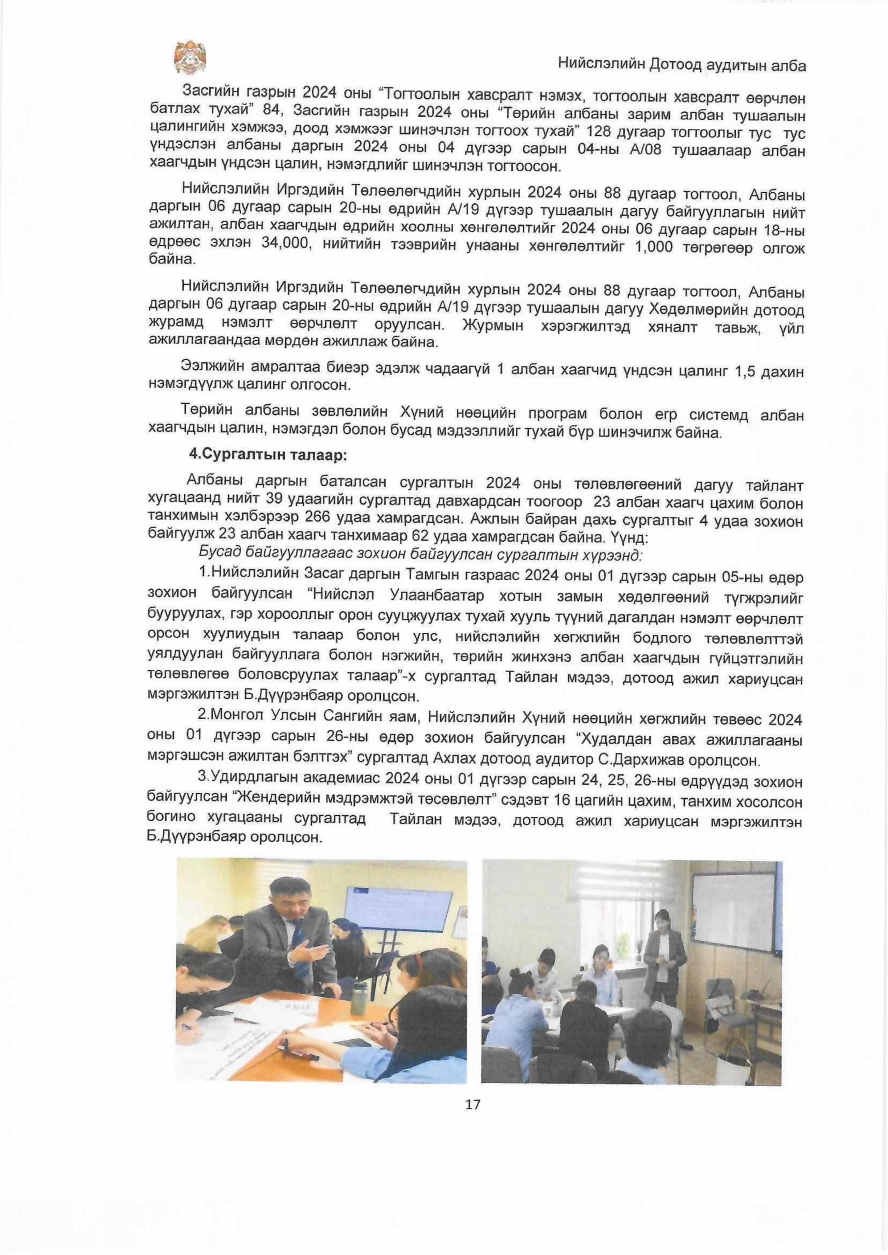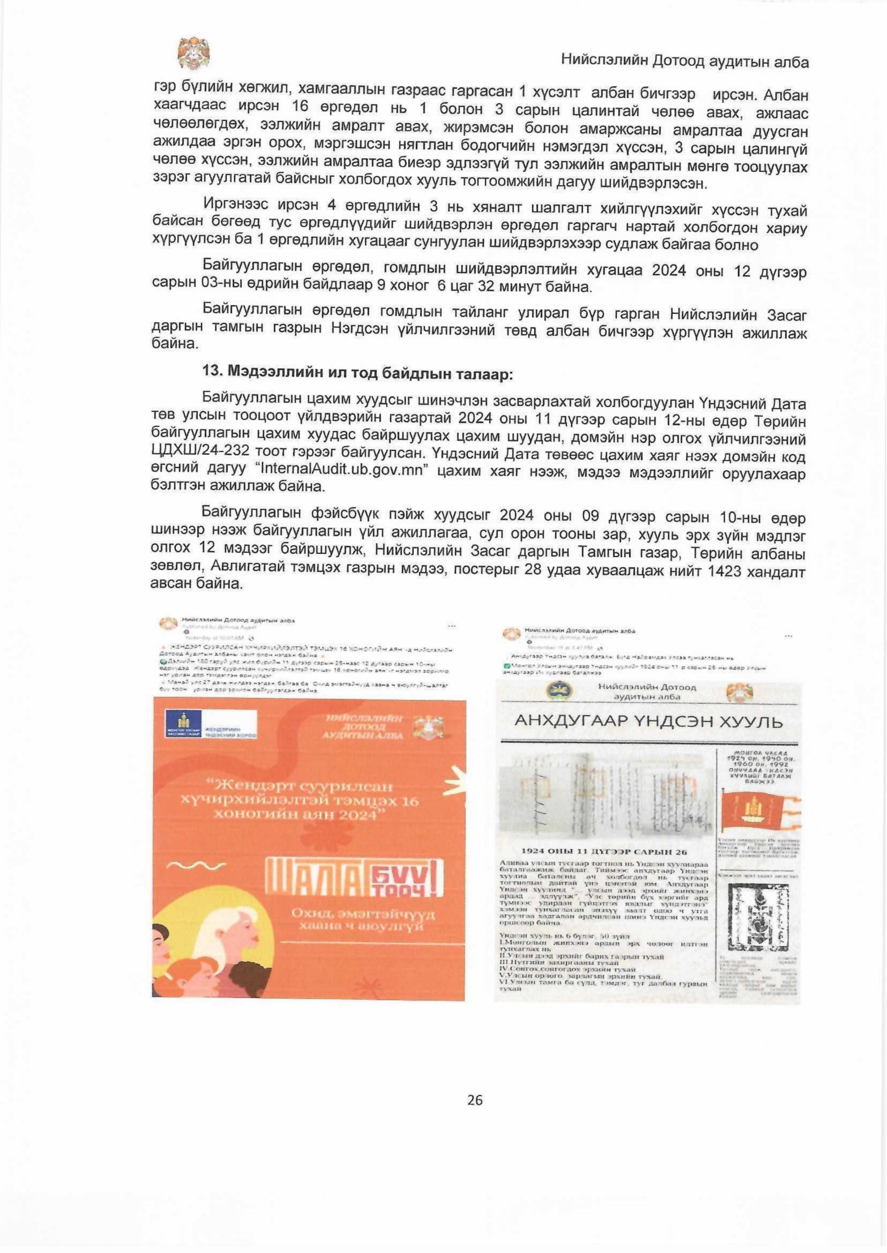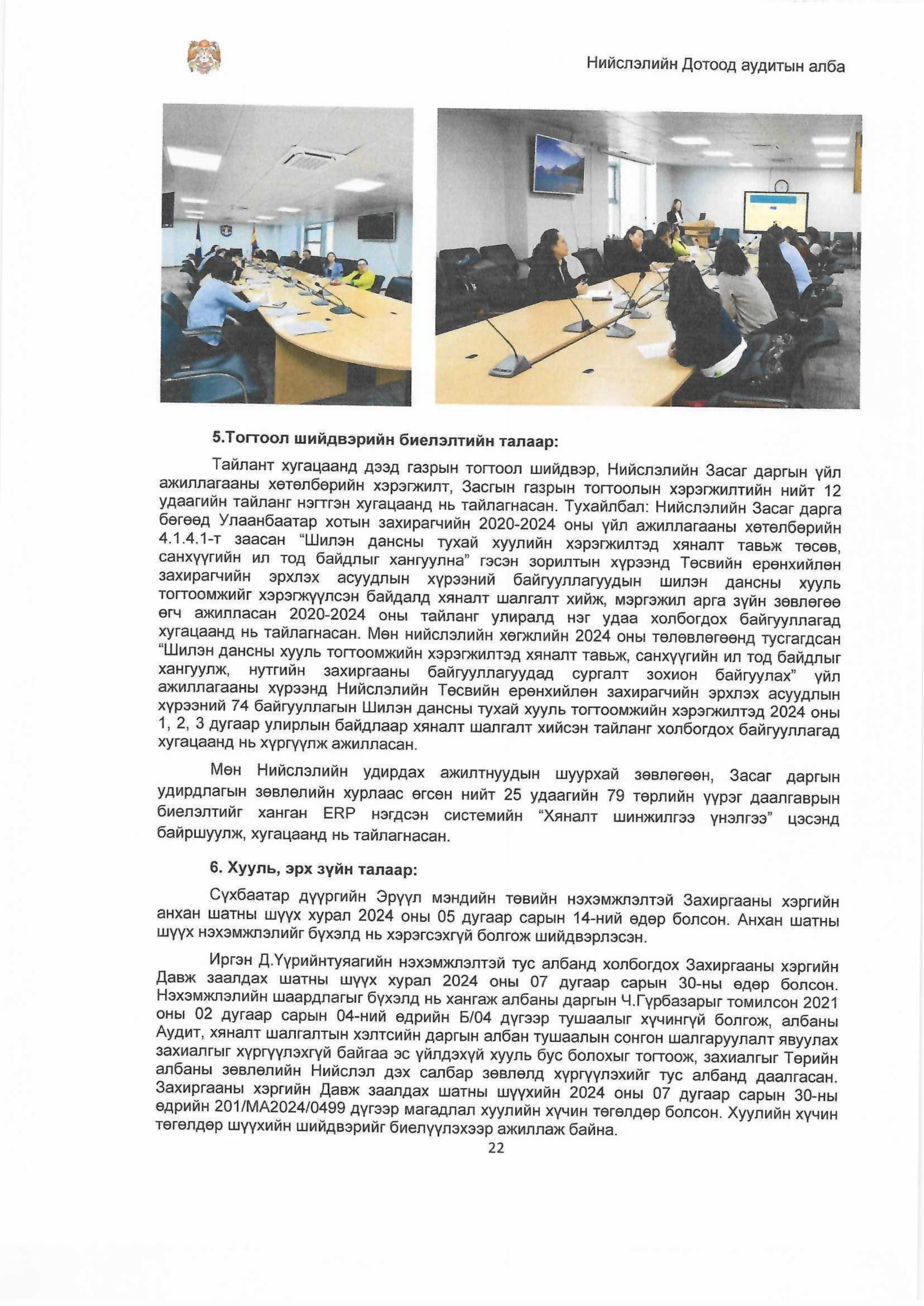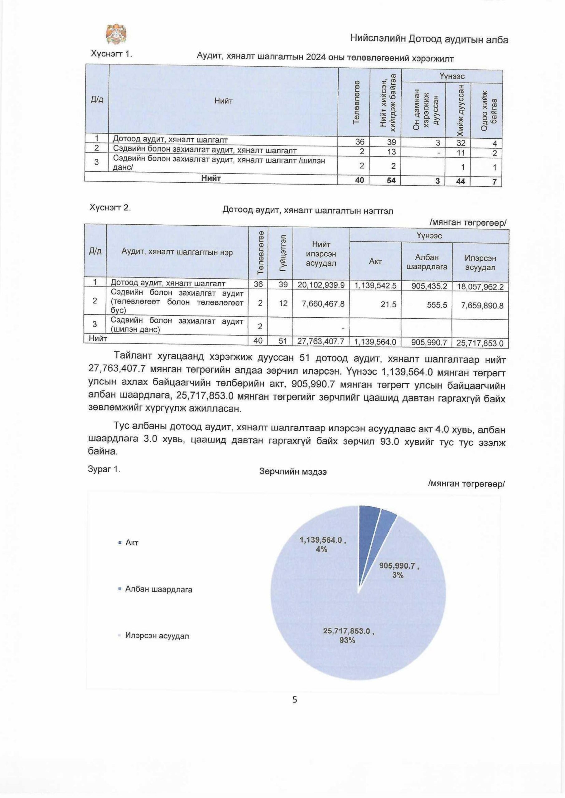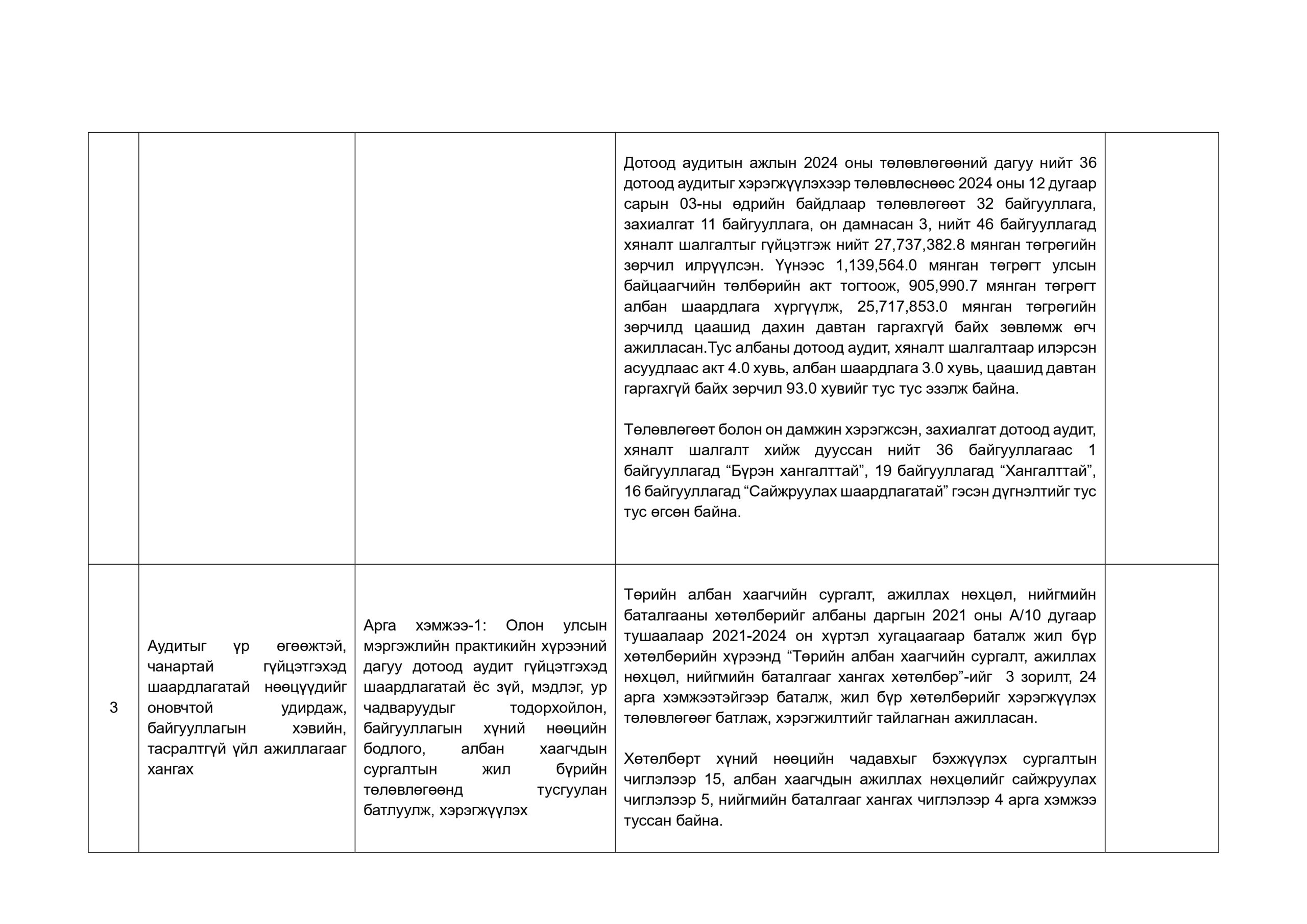 Нийслэлийн Дотоод аудитын албаны Үйл ажиллагааны 2024 оны жилийн эцсийн тайлан