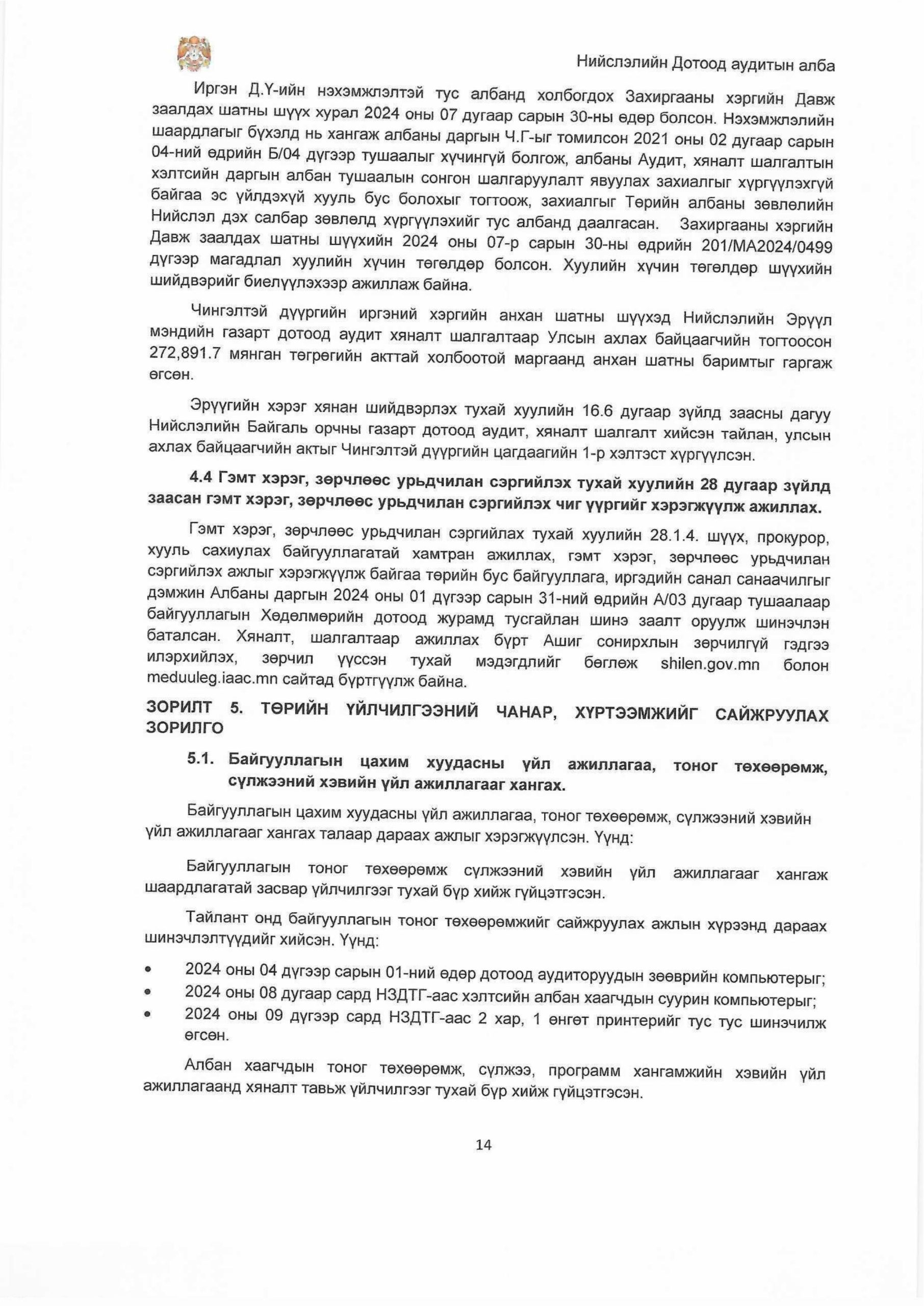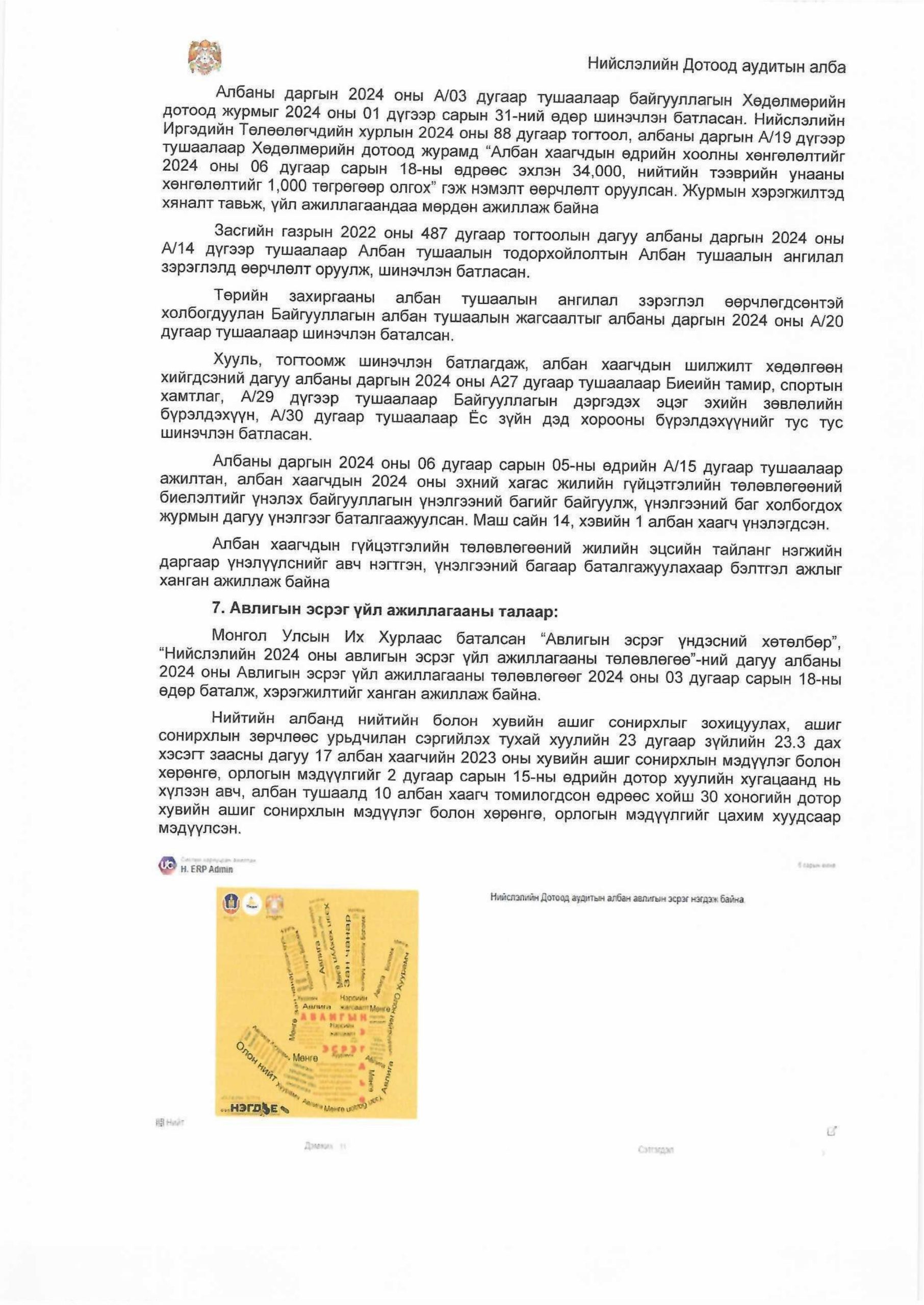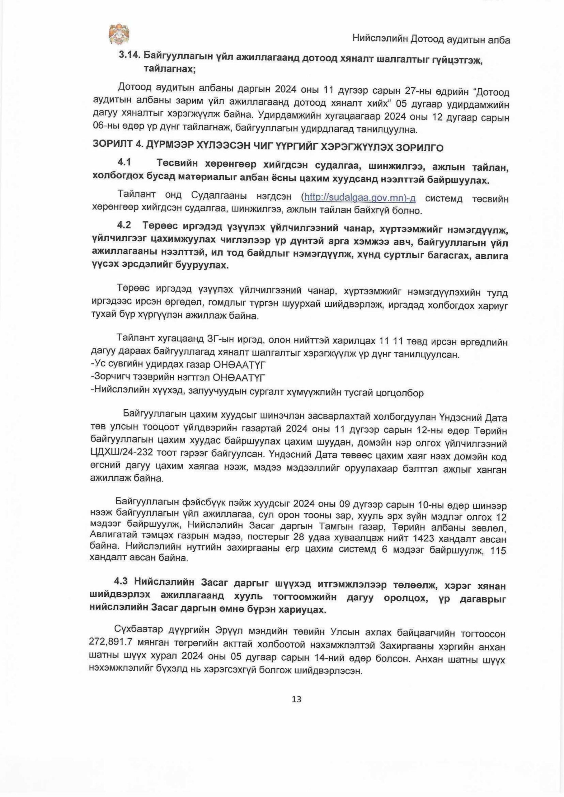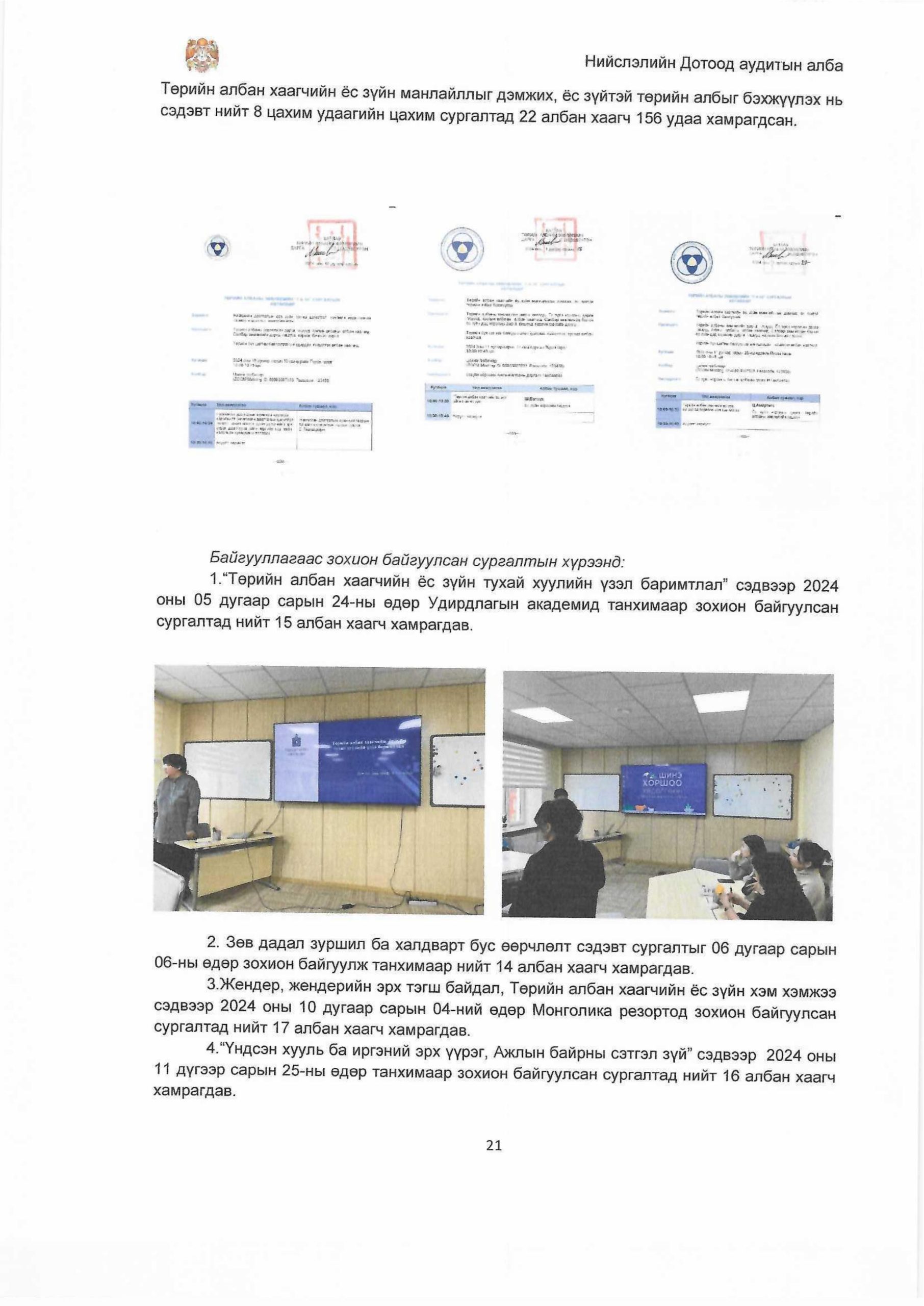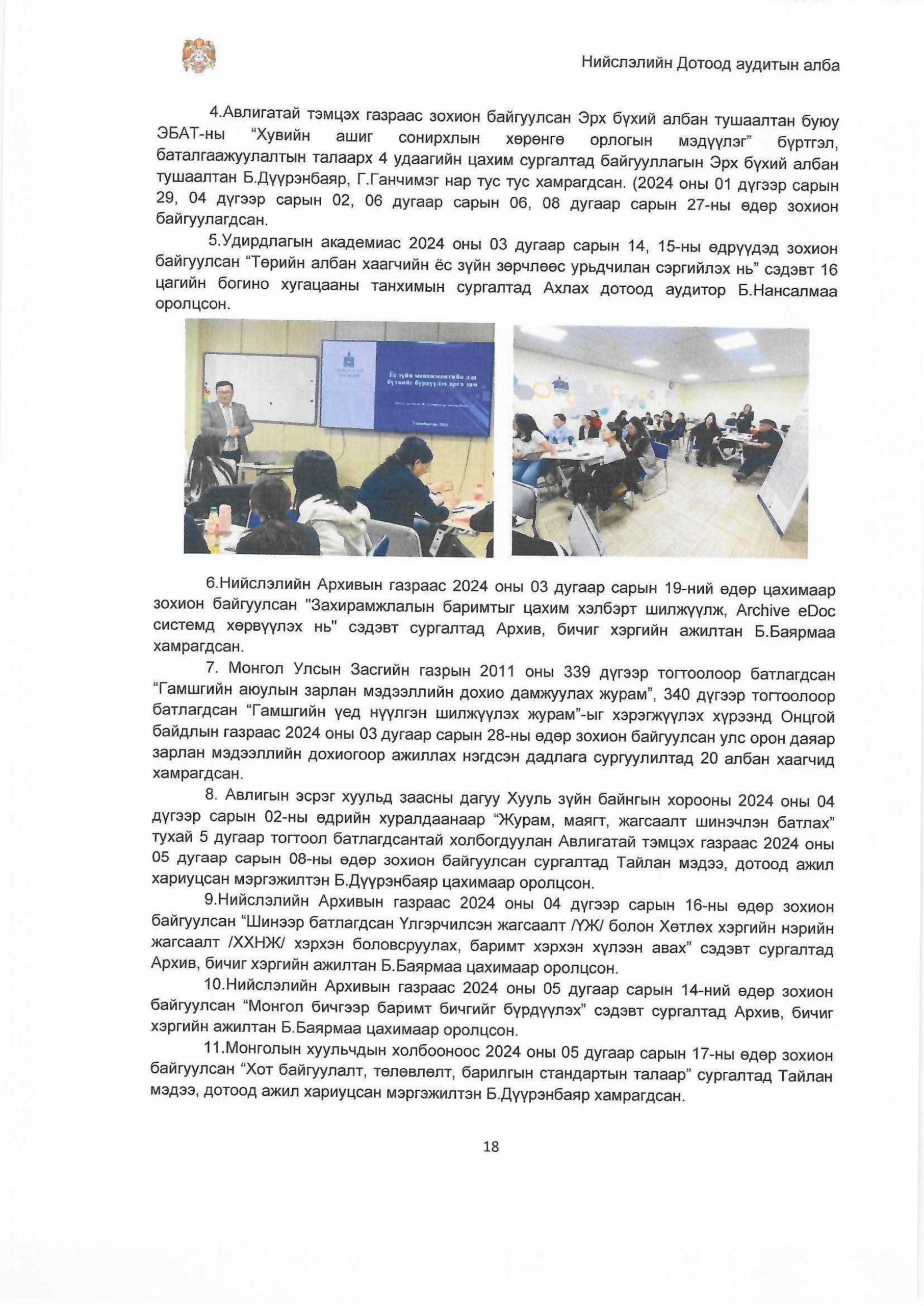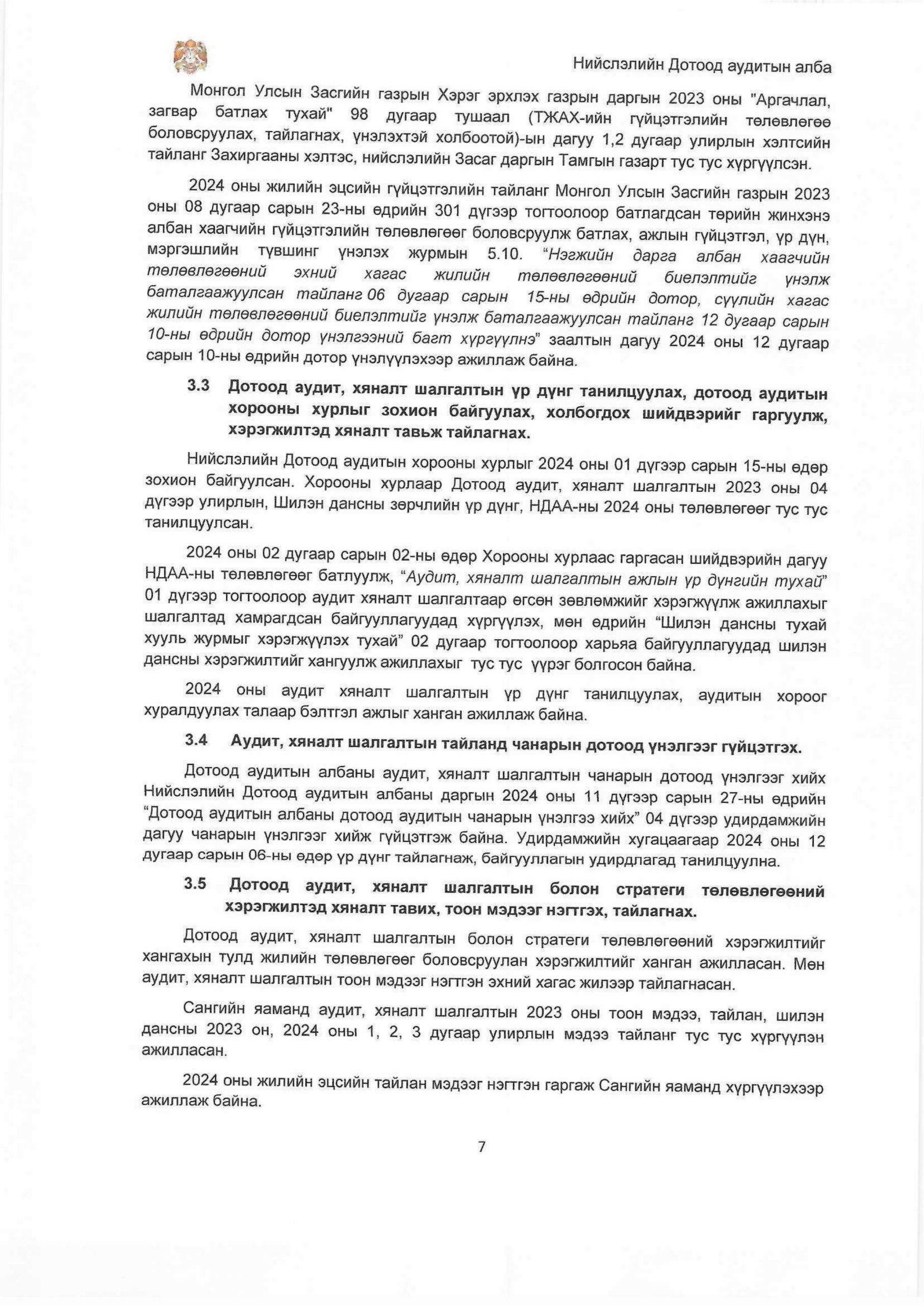 Нийслэлийн Дотоод аудитын албаны Үйл ажиллагааны 2024 оны жилийн эцсийн тайлан