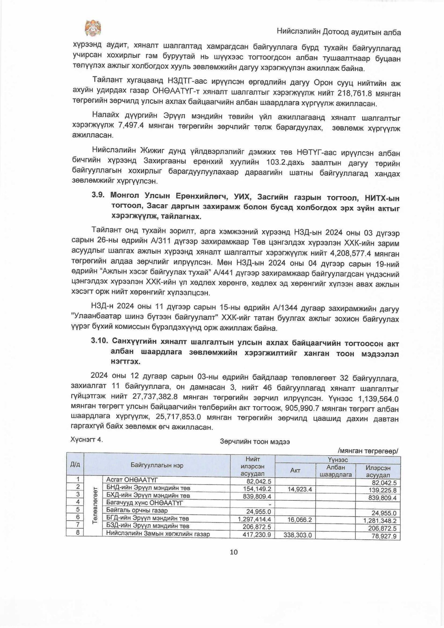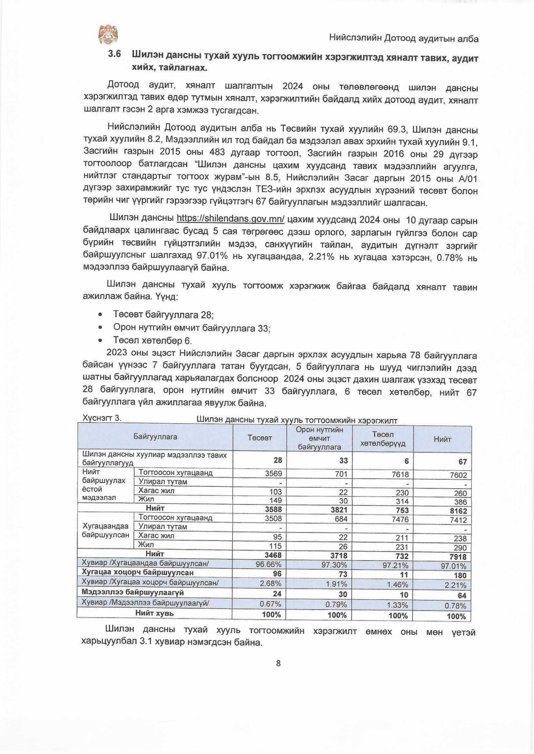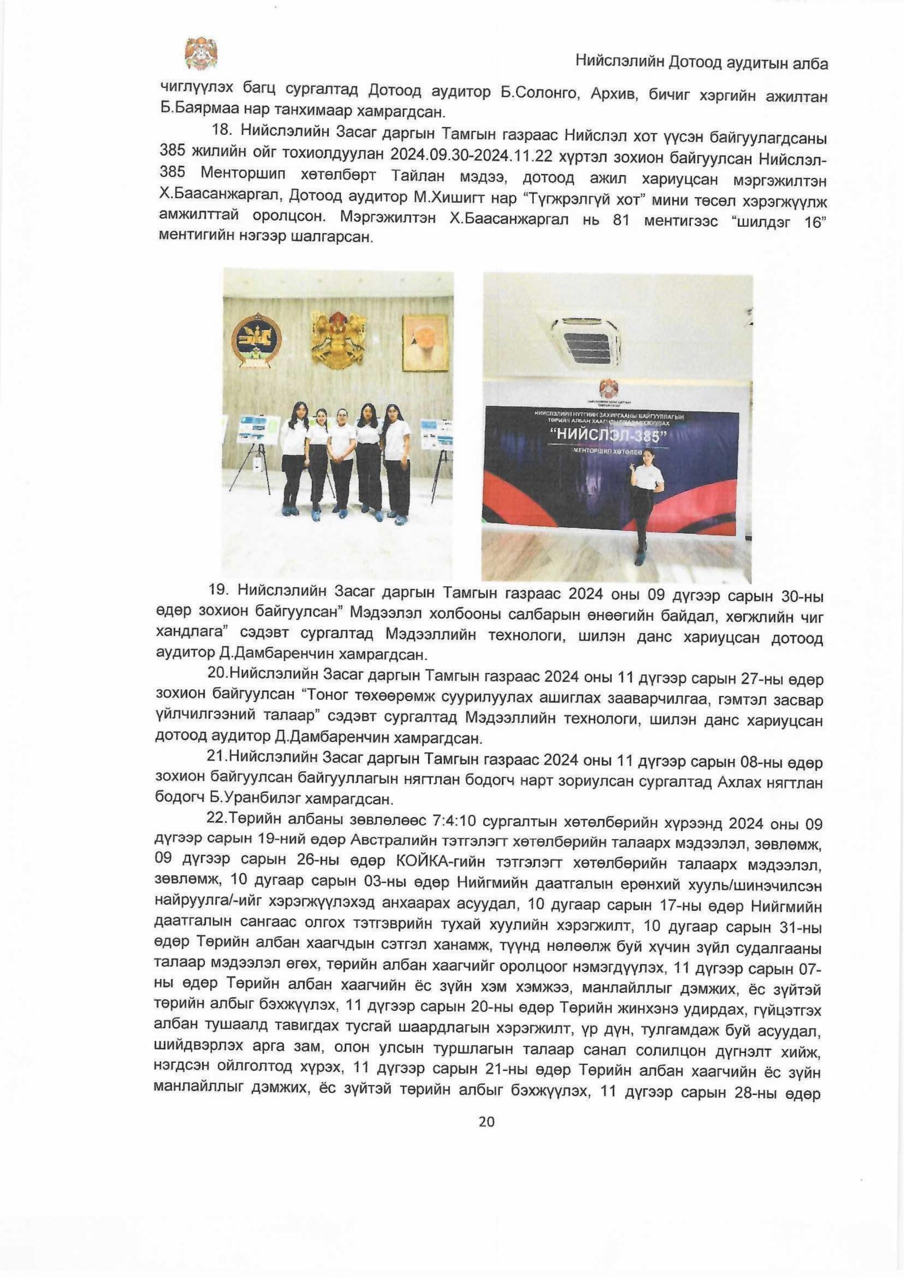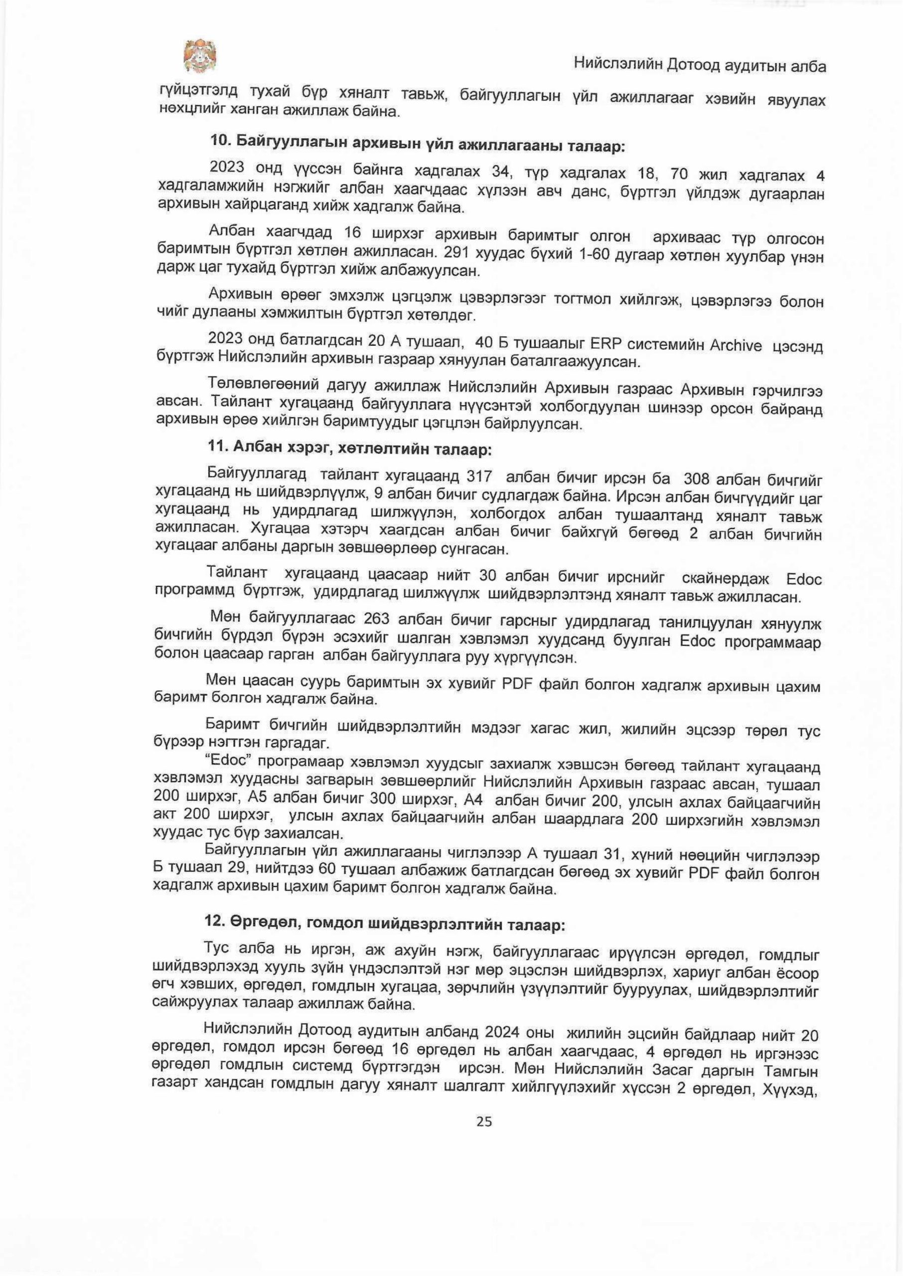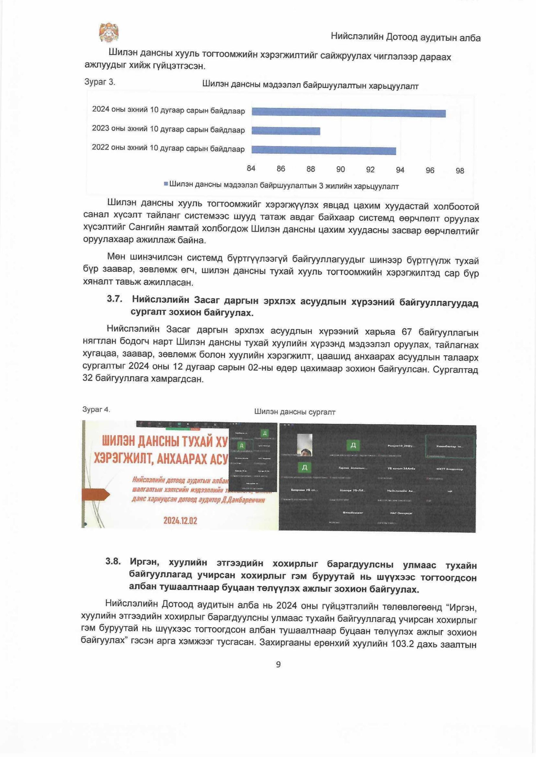 Нийслэлийн Дотоод аудитын албаны Үйл ажиллагааны 2024 оны жилийн эцсийн тайлан