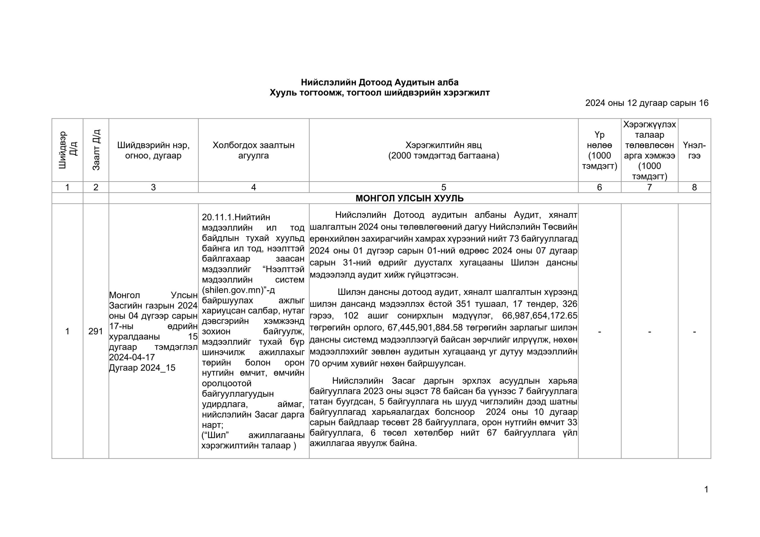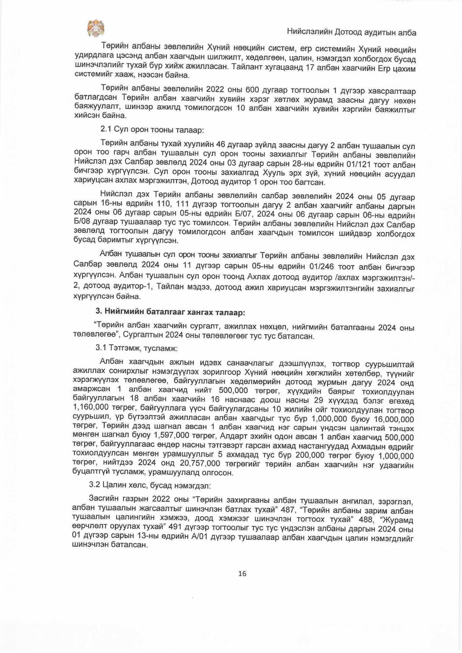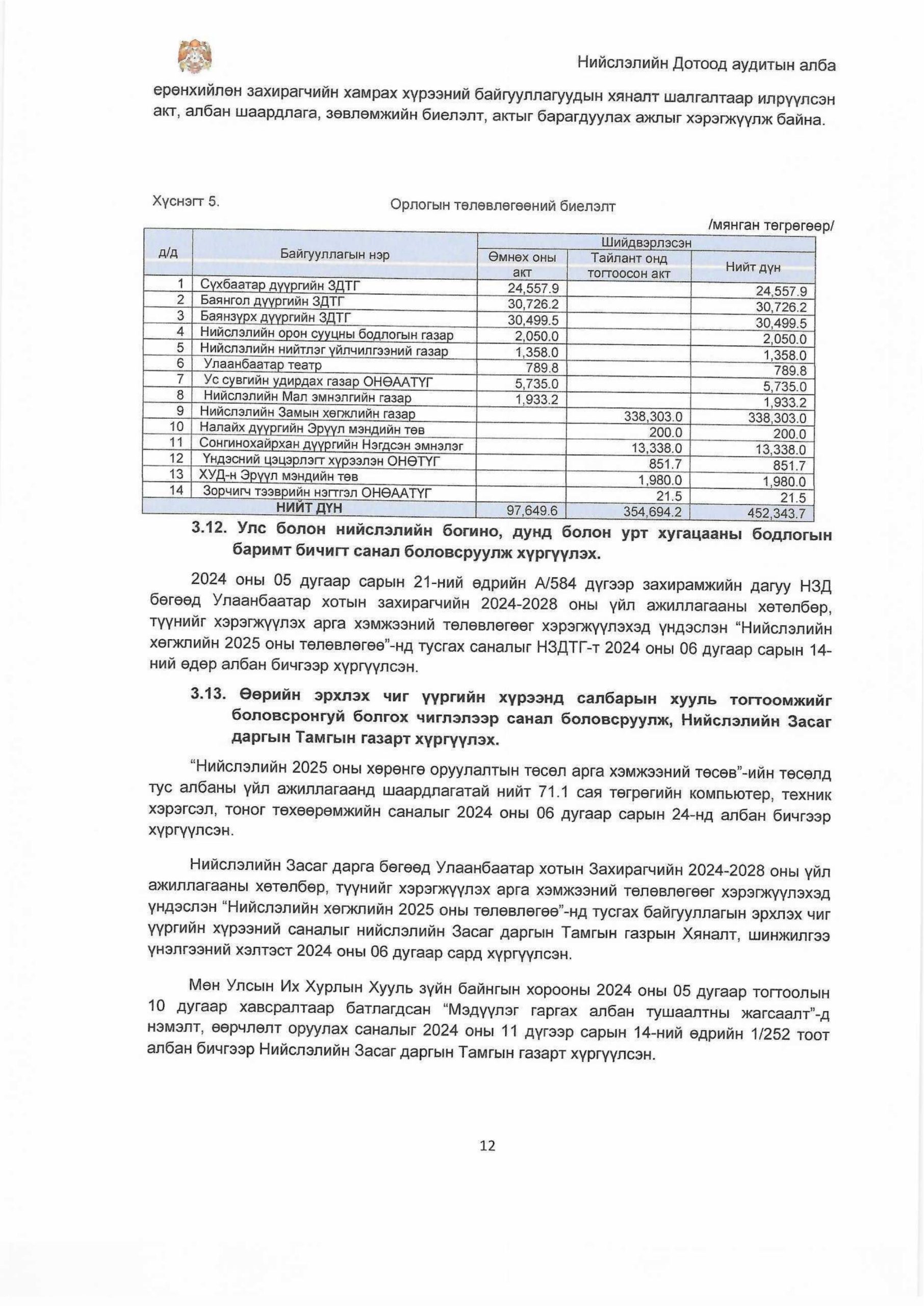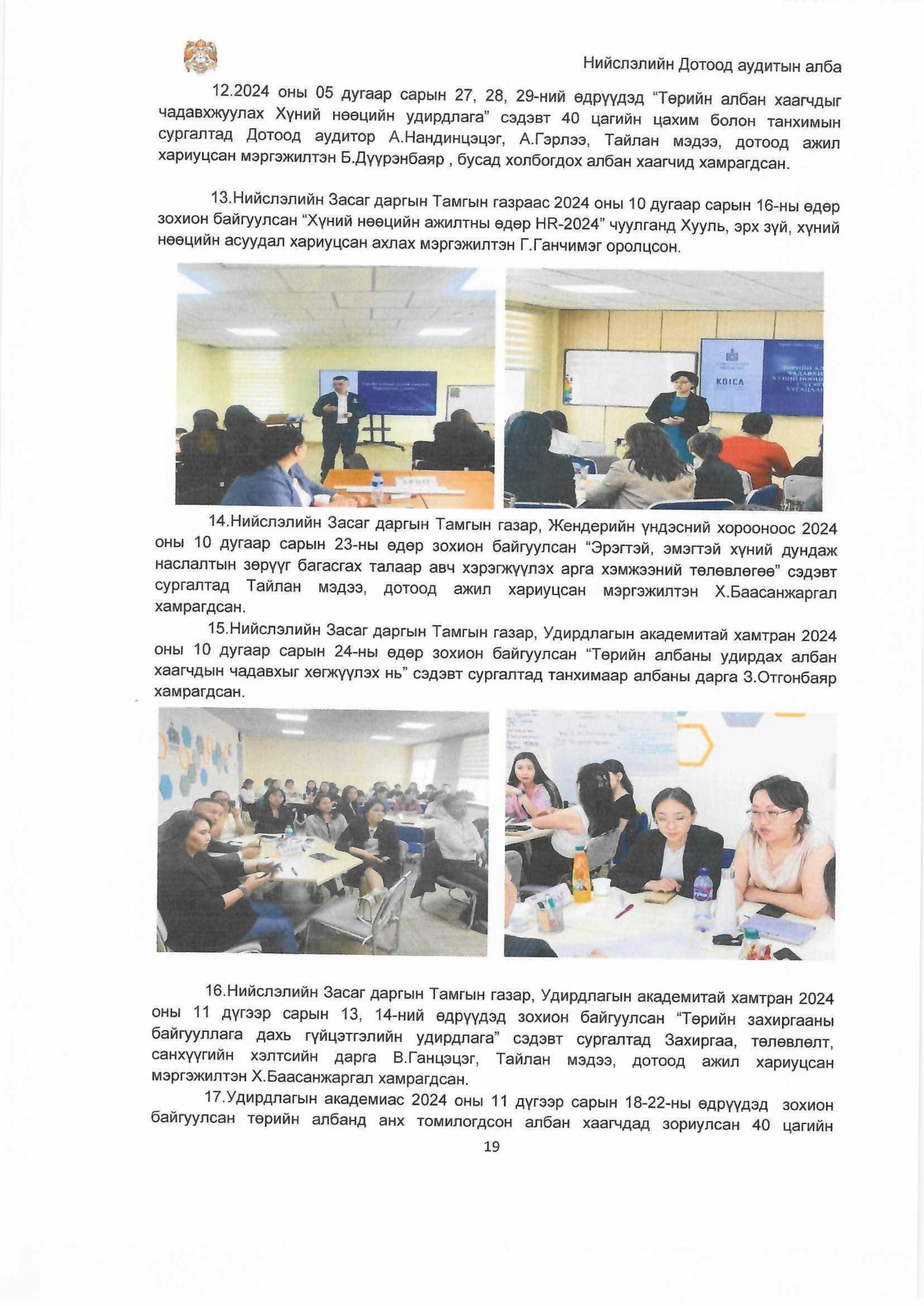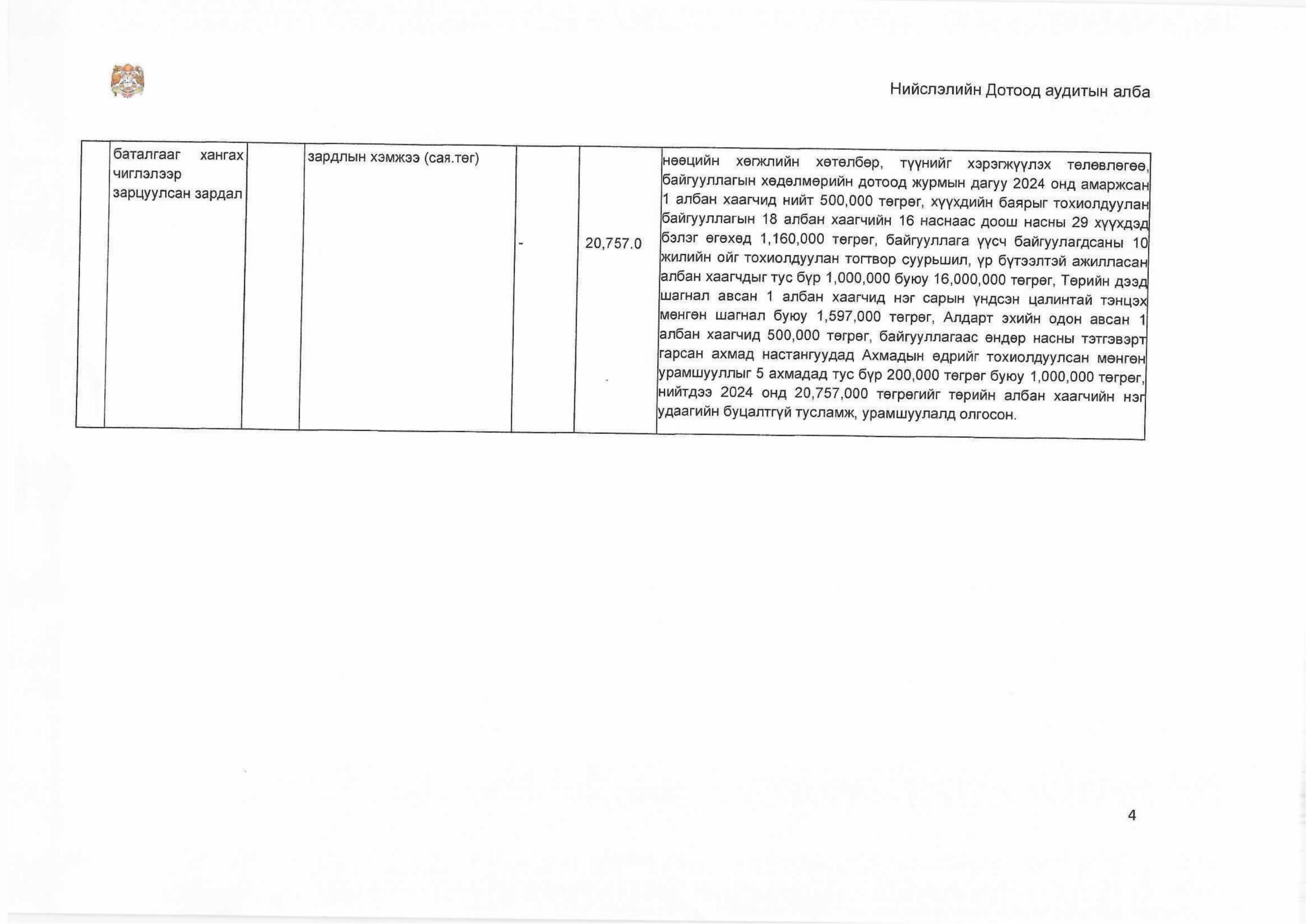 Нийслэлийн Дотоод аудитын албаны Үйл ажиллагааны 2024 оны жилийн эцсийн тайлан