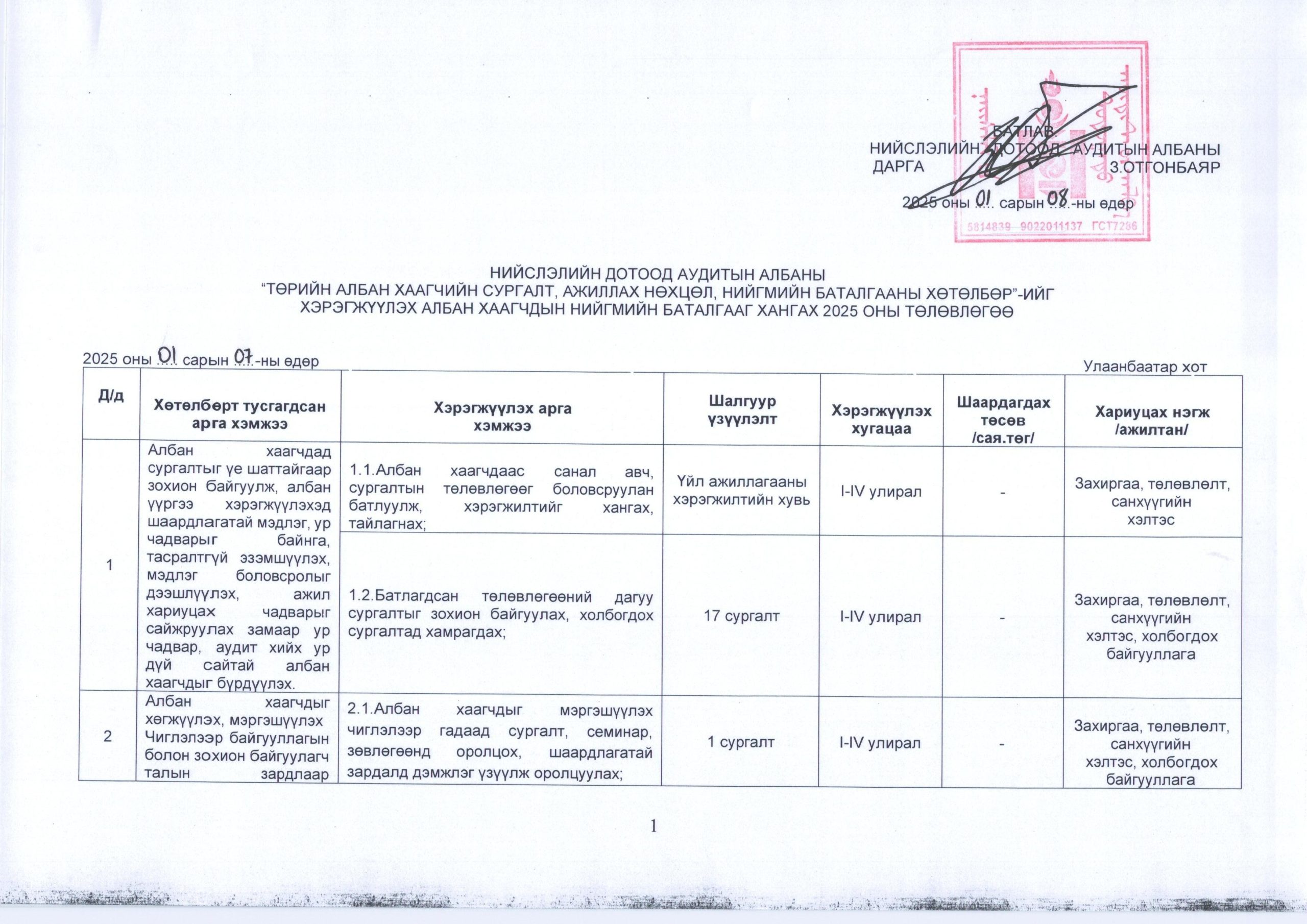 Нийслэлийн Дотоод аудитын албаны Стратеги төлөвлөгөөний хэрэгжилтийн 2024 оны жилийн эцсийн биелэлт